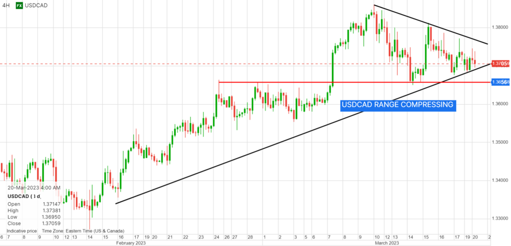 Canadian inflation data for February is due tomorrow and expected to show headline CPI fell to 5.4% from 5.9% while Core-CPI drips to 4.6% from 5.0% y/y. The continued slide in CPI suggests the BoC may leave rates unchanged again at the April 12 meeting.