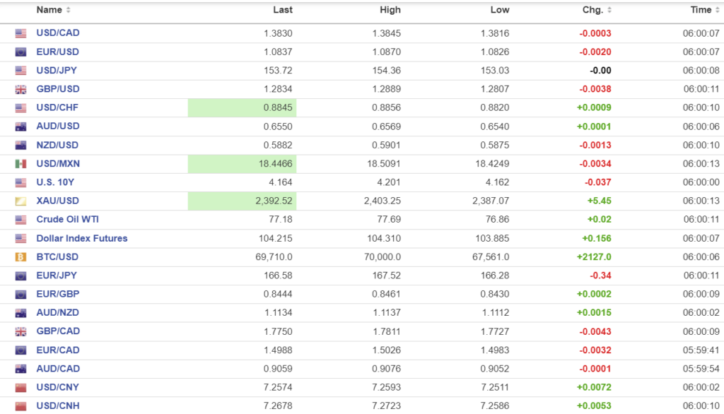 FX high, low, open (as of 6:00 am ET)