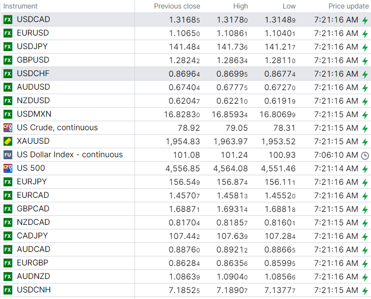 FX high, low, previous close