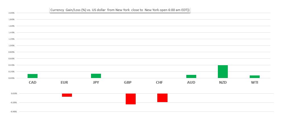 Change in currency value against the US dollar from New York close to New York open