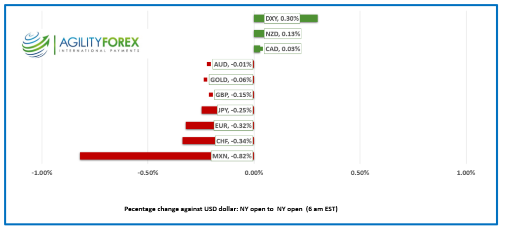 - US dollar opens mostly higher from close-mixed compared to yesterday’s open.