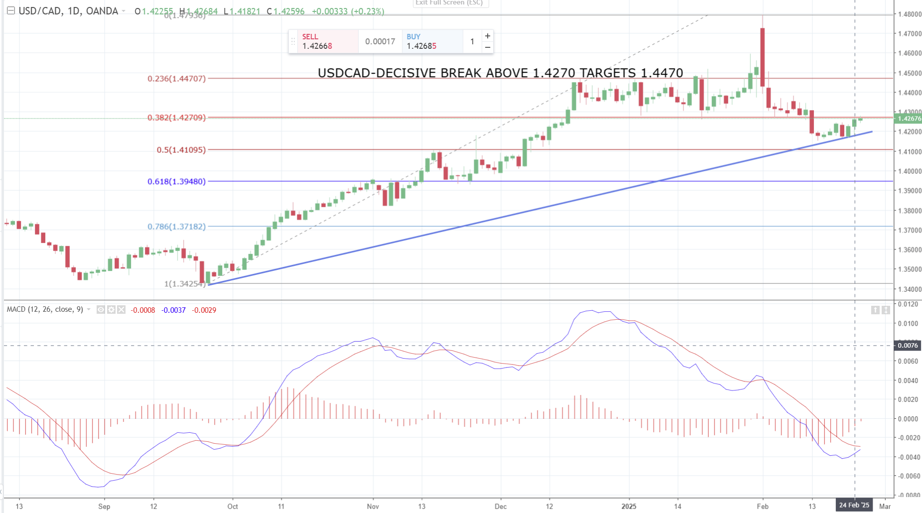 For today, USDCAD support is 1.4240 and 1.4190. Resistance is at 1.4280 and 1.4320.
