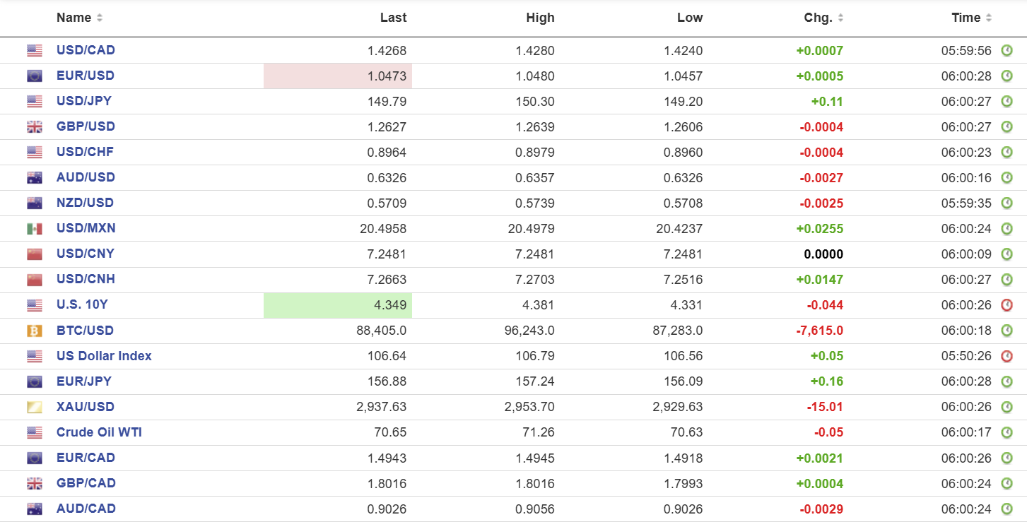 FX high, low, open (as of 6:00 am ET)