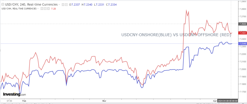 Chart: USDCNY and USDCNH 4 hour