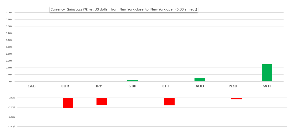 Change in Currency value vs the US dollar- NY close to NY open