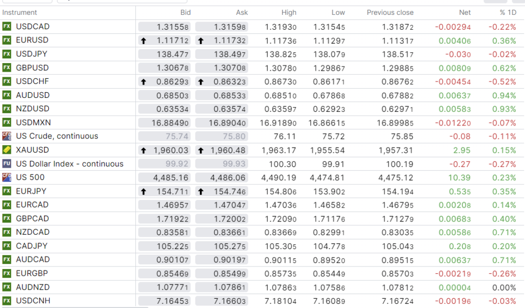 FX open, high, low, previous close as of 6:00 am ET