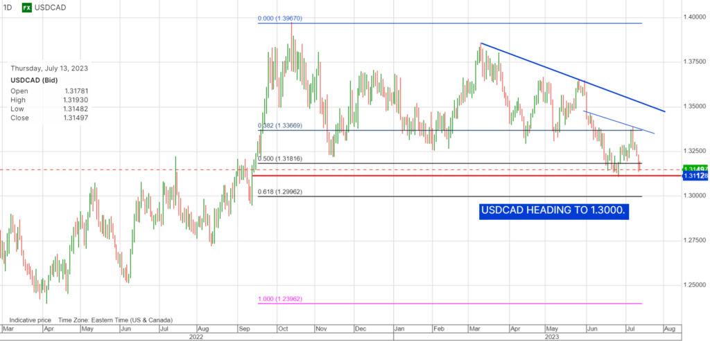 The intraday USDCAD technicals are bearish below 1.3190, looking for a break below 1.3150 to target 1.3110. A move above 1.3190 will test 1.3220, the downtrend line from July 7 but if it holds, it suggests another drop to 1.3150 is likely.