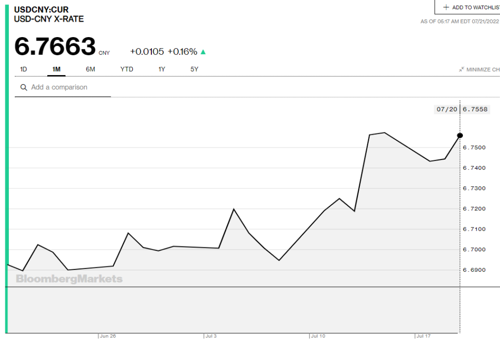 Today’s Bank of China Fix 6.7620, previous 6.7465