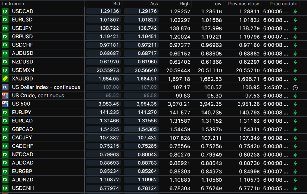 USDCAD Snapshot: open 1.2914-18, overnight range 1.2862-1.2925, close 1.2881