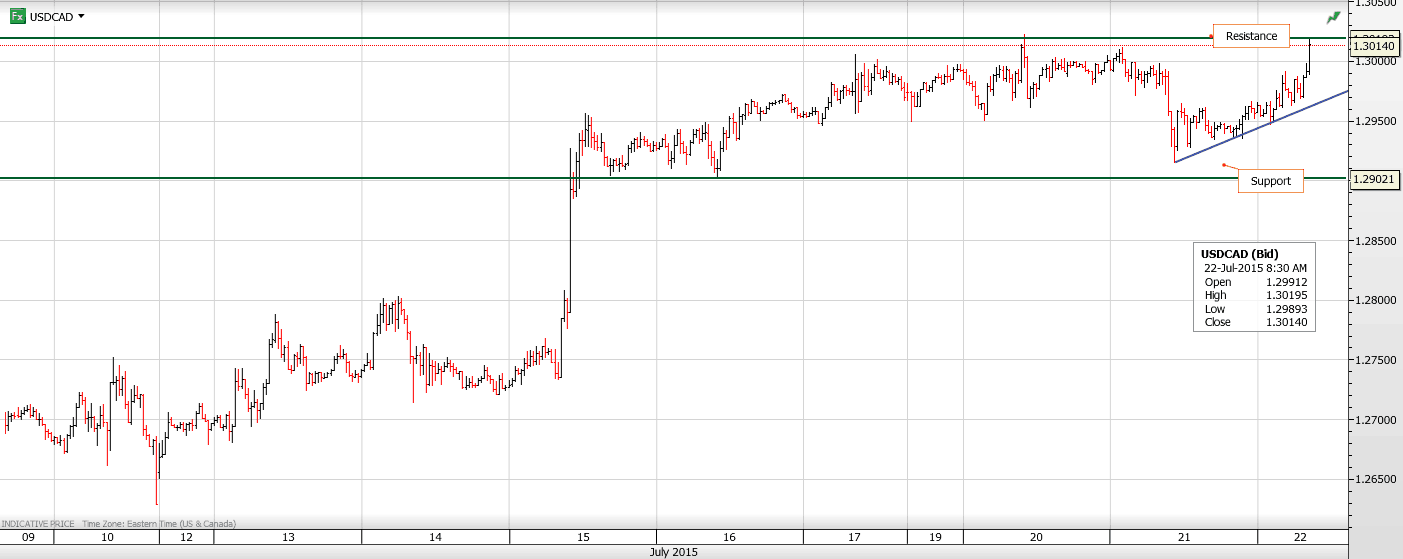 Chart: USDCAD 30 minute with support and resistance shown