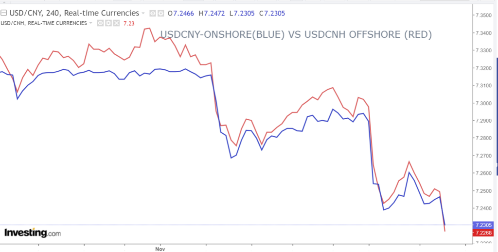 Wall Street’s mixed close did not provide much guidance for Asian equity indexes. A falling yen lifted Japan’s Nikkei 225 index 0.48%, while the Australian ASX 200 dipped down 0.13%. Hong Kong’s Hang Seng index fell 2.12%. Chinese equity traders did not seem impressed with the outcome of the Jinping/Biden meeting and were confused as to why American business leaders attending a dinner gave the Chinese emperor a standing ovation. Did the American’s think the man was America’s Got Talent winner, magician Shin Lim? Both Lim and Jinping make things disappear, one does cards, the other does business executives.