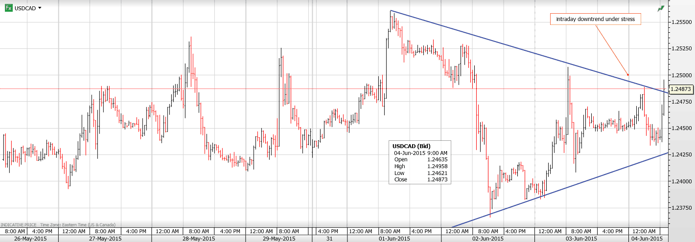 Chart: USDCAD 30 minute showing break of intraday downtrend