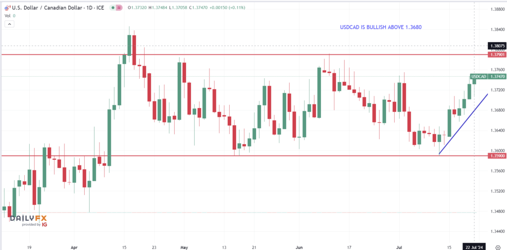 USDCAD is trading near the top of its July range ahead of the widely anticipated Bank of Canada rate cut on Wednesday. Last week’s soft CPI data pretty much guaranteed such a move. Wednesday’s meeting comes with the quarterly Monetary Policy Report and updated forecasts.
