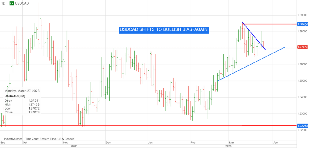 USDCAD is also on the defensive because markets are pricing that the Fed will pause rate hikes in May which served to reduce the CAD/US 2-year bond spread from -162.4 on March 2 to -111.2 this morning.