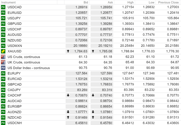 FX open (6:00 am EDT) High, Low, and previous close