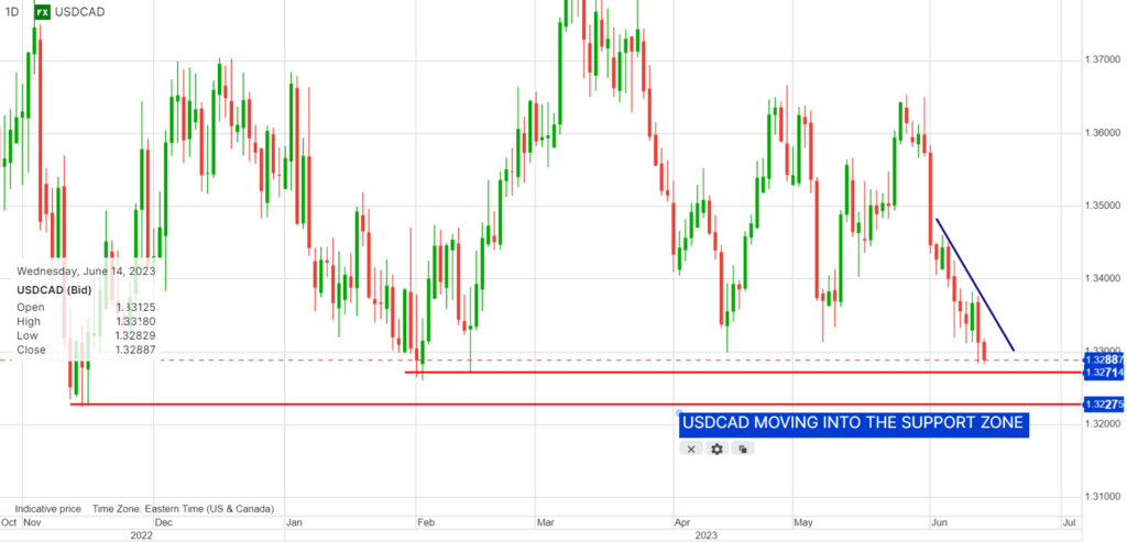 USDCAD is testing support in the 1.3290 area. The downside pressure is almost all due to widespread US dollar selling pressures on speculation that the Fed is at the end of its tightening cycle. In addition, hopes for higher oil prices and the latest BoC rate hike are also contributing to the downward pressure on prices.