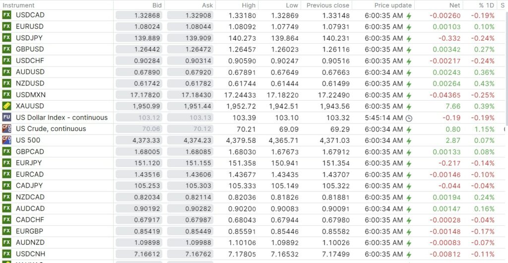 .,FX open, high, low, previous close as of 6:00 am ET