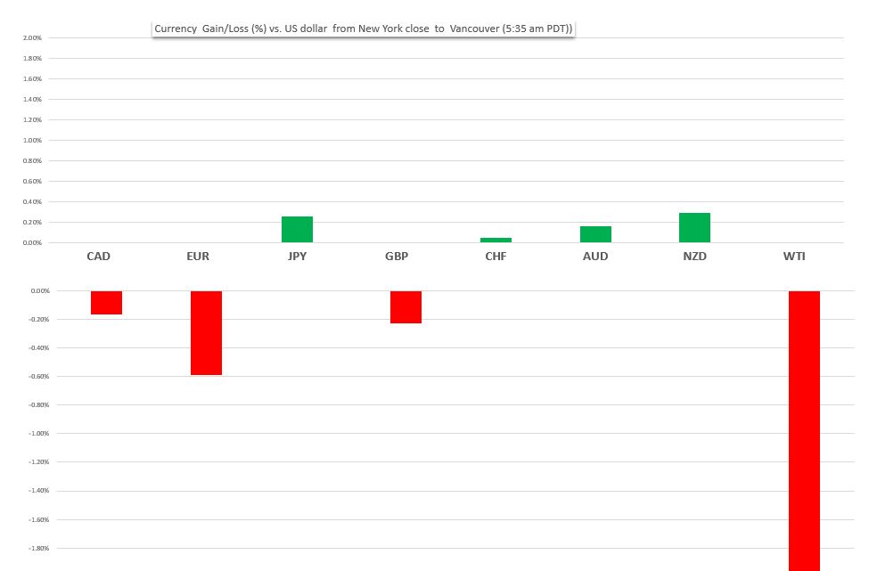 The US dollar opened in Toronto with modest losses across the board but that changed after the ECB announcement. The US dollar is mixed as of 5:30 am in Vancouver with EURUSD the worst performing currency against the greenback.