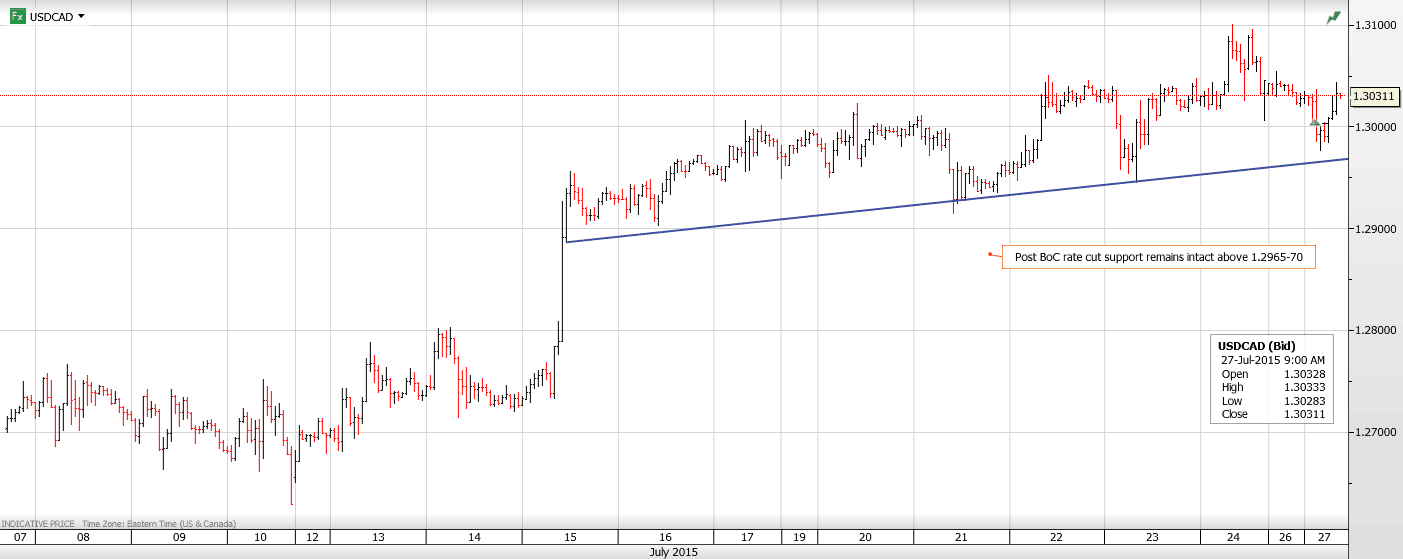 Chart: USDCAD hourly with post BoC support shown