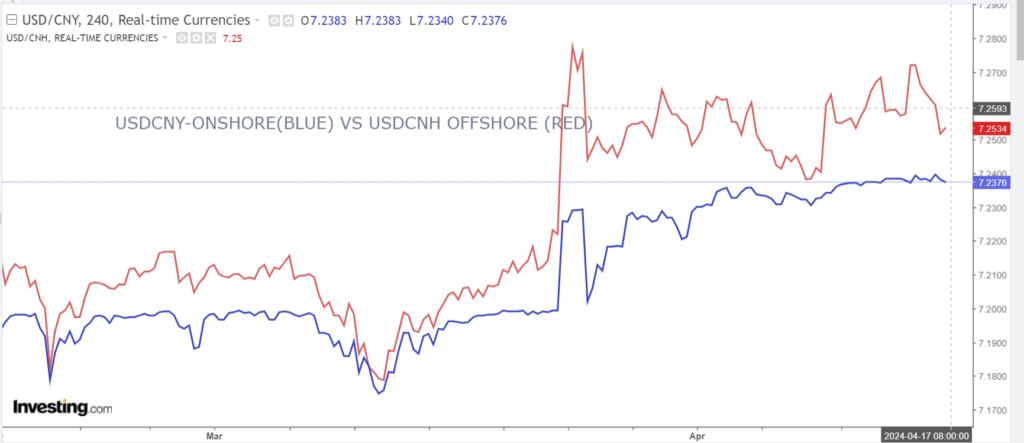 Chart: USDCNY and USDCNH 4 hour