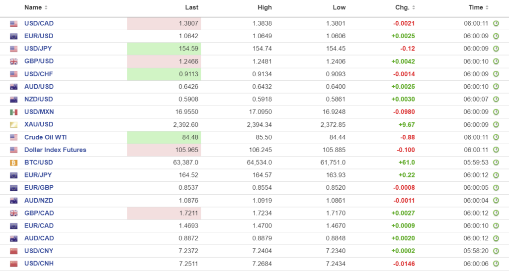 FX high, low, open (as of 6:00 am ET)