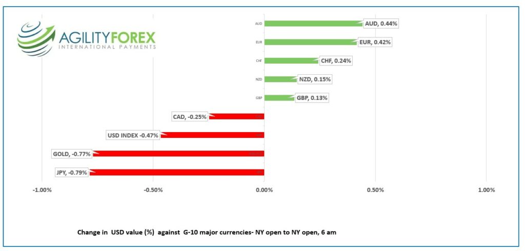 When the dust settled, the US dollar was mixed and mostly for non-US reasons. AUD rallied in anticipation of more RBA rate hikes, while recession news sank NZD. EUR and GBP rallied ahead of today’s ECB meeting.