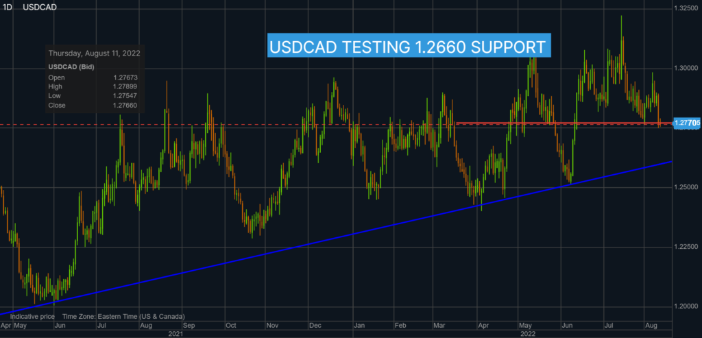USDCAD dropped in response to broad US selling pressures after the US CPI print, and by a rebound in West Texas Intermediate oil prices.  USDCAD direction is at the whim of broad US dollar moves and exaggerated due to reduced volumes from summer holidays.