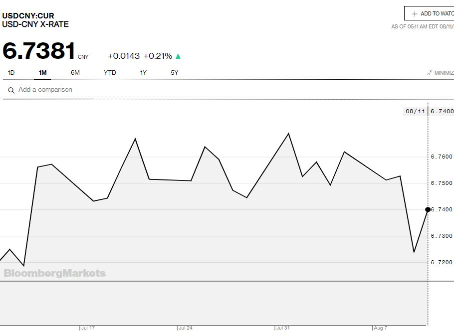 Today’s Bank of China Fix: 6.7324, previous 6.7612