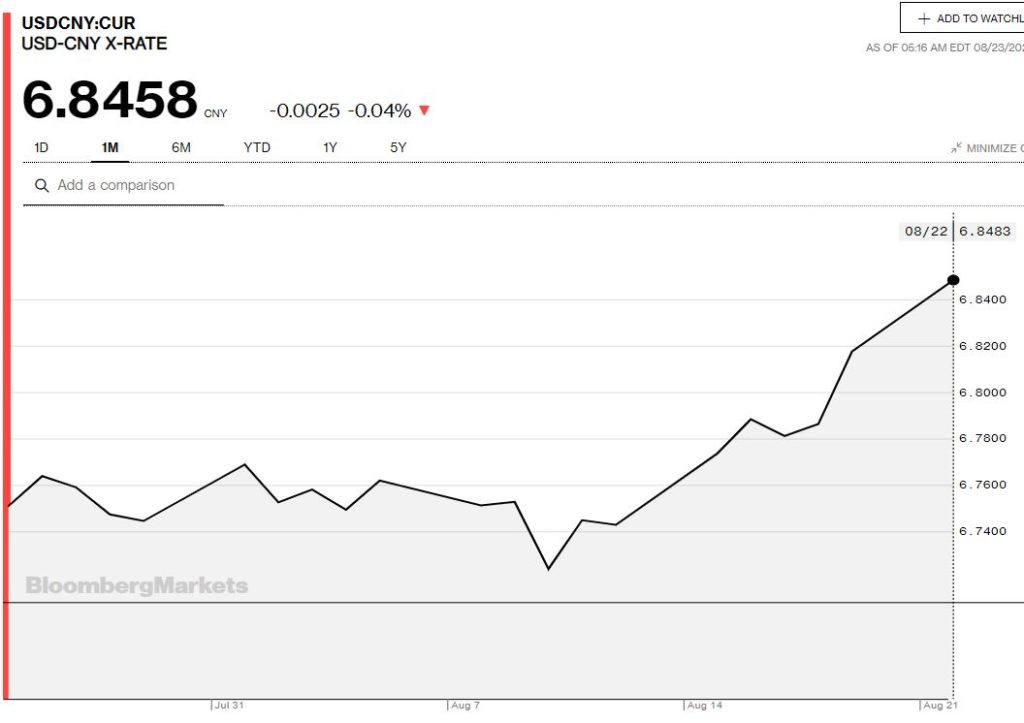 Today’s Bank of China Fix: 6.8523, previous 6.8198