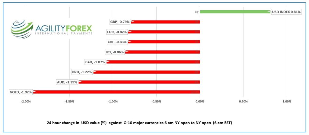 - US dollar gains with commodity bloc underperforming