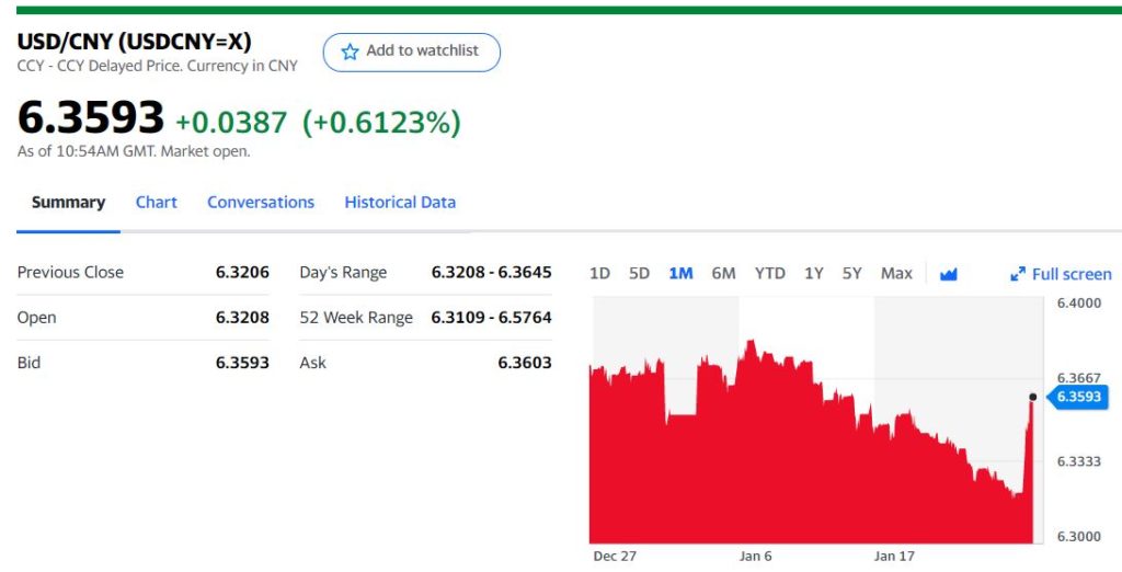 Chart: USDCNY 1 month