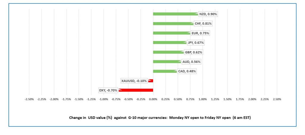 FX Recap and Outlook: The US dollar is poised to finish the week on a losing note. NZD led the G-10 major higher, rising 0.90%, while CAD came last with a 0.48% gain.