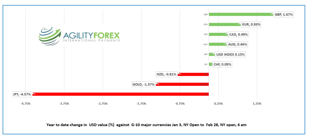 - US dollar lower YTD, except vs JPY and NZD