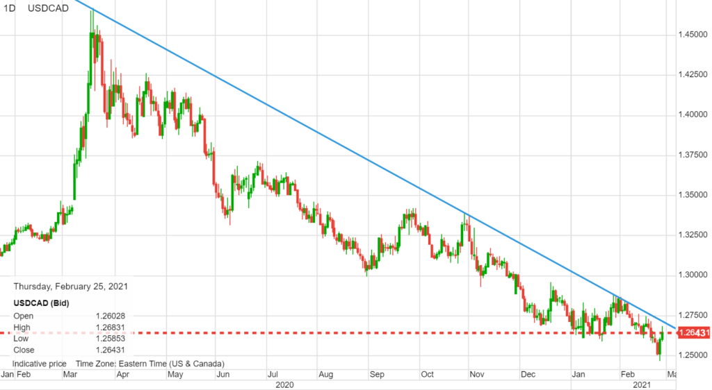 USDCAD open (6:00 am ET) 1.2646-50, Overnight Range 1.2589-1.2648, Close 1.2605