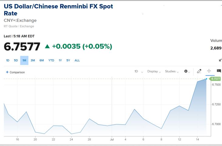 Today’s Bank of China Fix 6.7503, previous 6.7265