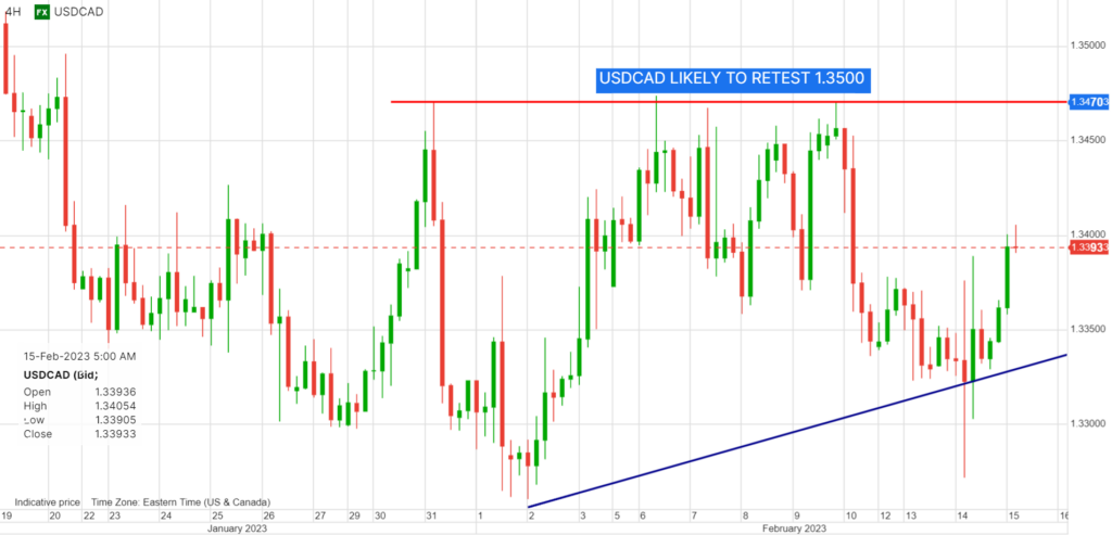 USDCAD gains extended after US Retail Sales surged 3.0% m/m. The news further reinforces Fed Chair Powell’s view that US rates need to rise higher than expected to tame inflation.