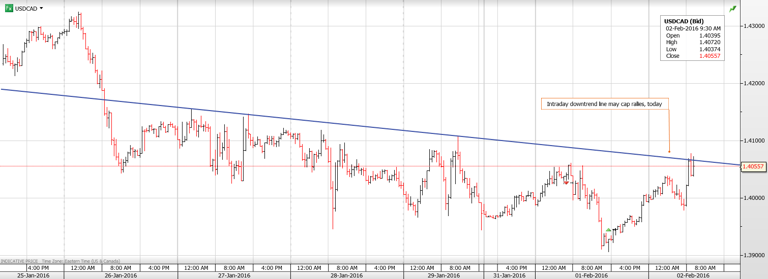 The risk aversion theme has continued in New York. US equity markets are all in the red. News that BP posted a $5.2 billion dollar loss in 2015 put a damper on hopes for a global growth rebound.  However, the USDCAD rally stalled at 1.4077 leaving the intraday downtrend intact.