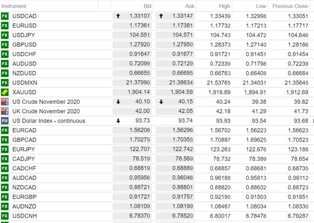 FX open (6:00 am EDT) High, Low, and previous close