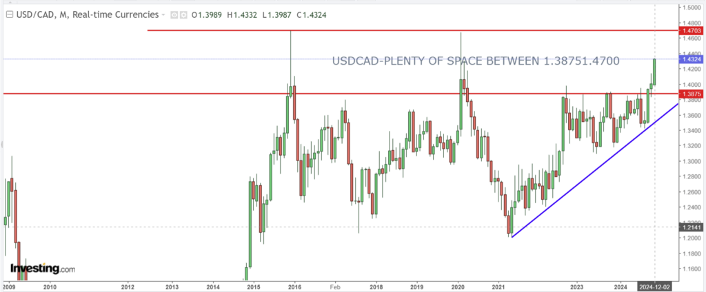 USDCAD remains supported by the Bank of Canada’s dovish monetary policy outlook  which contrasts that of the Fed, which is expected to be rather neutral  In addition, Trump’s  threat to levy 25% tariffs on all Canadian imports is a major negative, especially in the face of a dysfunctional government.
