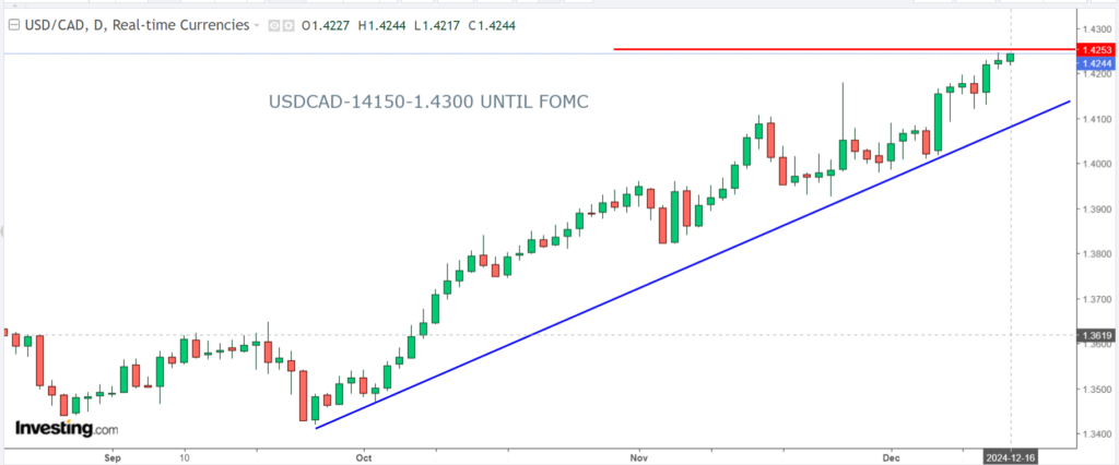 However, traders are still long USDCAD leaving the currency vulnerable to year end position adjusting.