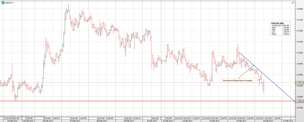 USDCAD was under pressure the entire overnight session and then extended those losses in early New York trading which led to a test of support at 1.3010.