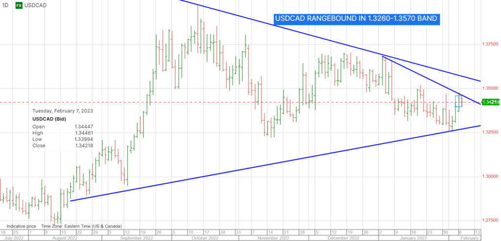 EURUSD traded in a 1.06878-1.0743 range with the low seen in early NY. Traders are more worried about hawkish remarks from Mr Powell this morning which is hawkish statements from ECB officials earlier. EURUSD is also weighed down by soft German Industrial Production data which fell 3.1% m/m and 3.9% y/y in December. ING economists said, “This is a simply horrible report.”