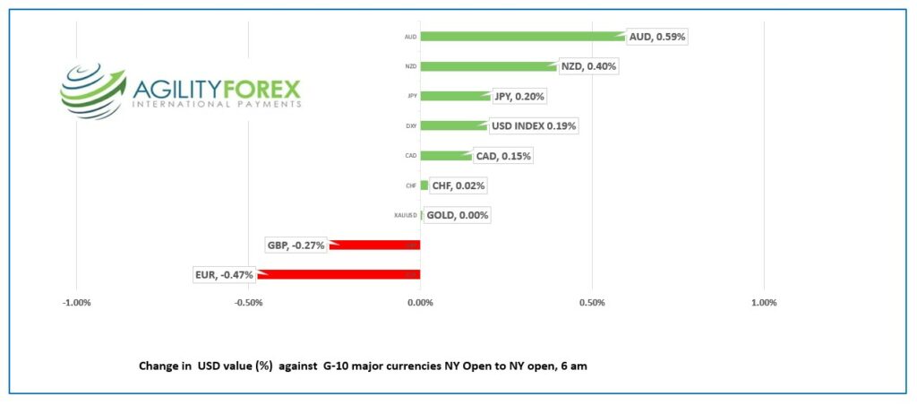 - US dollar falls from best levels, AUD outperforms.