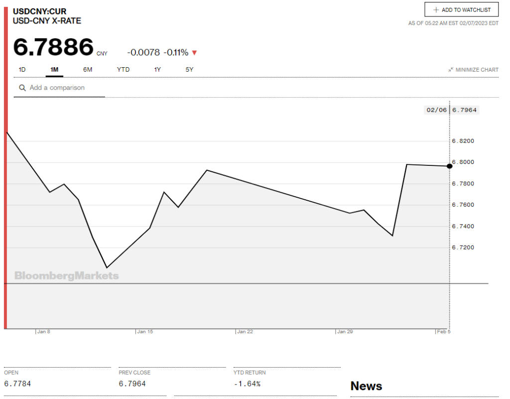 Chart: USDCNY 1 month