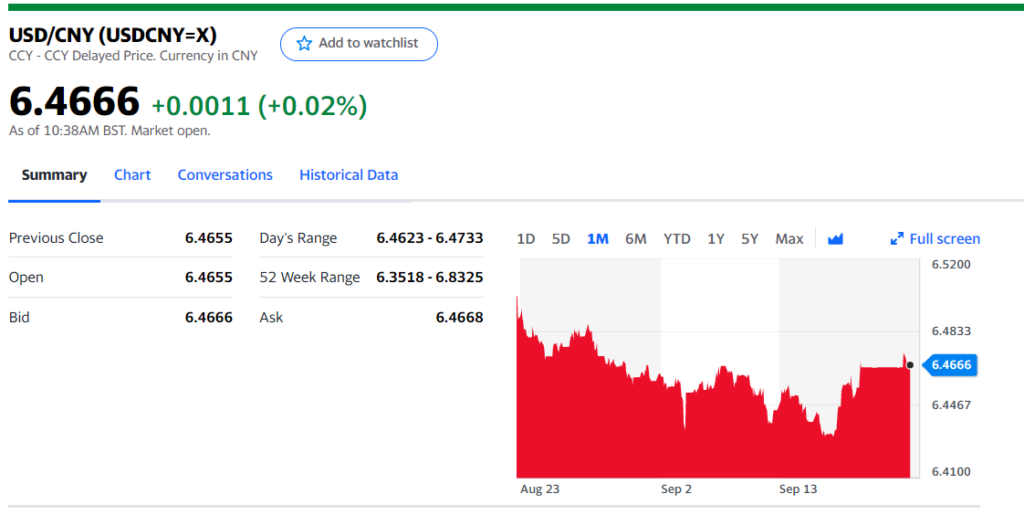 Today’s Bank of China Fix, 6.4693, Previous 6.4527