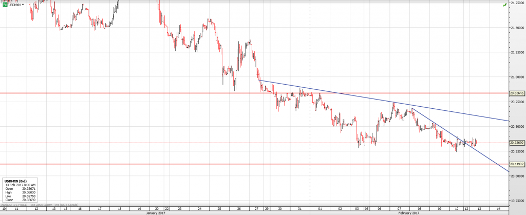 USDMXN snapped the intraday downtrend with the move above 20.3380 and spent the entire overnight session jockeying for position in a 20.2940-20.3005 range. A break above 20.3987 will extend gains to 20.4690 while a break below 20.2900 opens the door to 20.2748