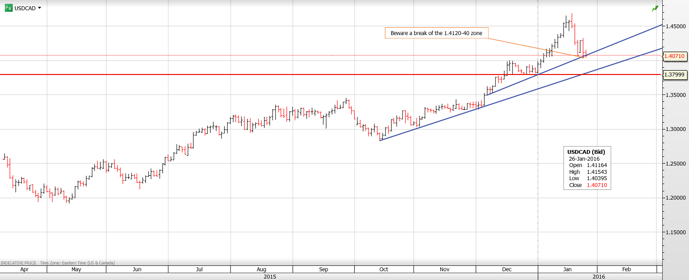 USDCAD is struggling to maintain topside momentum. Yesterday’s USDCAD sell-off on another oil price bounce came to an abrupt end on the hand-off of FX trading to Asia. The late day announcement by the American Petroleum Institute (API) that crude stocks rose 11.4 million barrels’ sucker-punched the Loonie and USDCAD rallied. The damage was limited and WTI stayed above the $30.00/b level overnight.