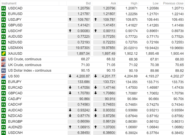FX open, high, low, previous close