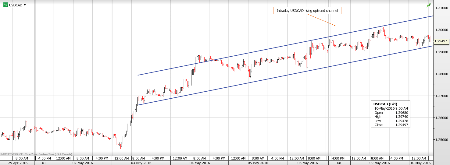 The intraday USDCAD technicals are bullish while trading above 1.2920, the bottom of a rising channel, the top being 1.3080 today.  A break above the 1.2970-80 area should extend gains to 1.3020 and then 1.3060.  A move below 1.2920 will lead back to 1.2870 and then 1.2840.  For today, USDCAD support is at 1.2920 and 1.2870.  Resistance is at 1.3020 and then 1.3050.