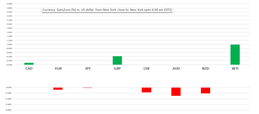 Change in currency value against the US dollar from NY close to NY open